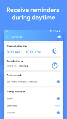 Håll dig hydrerad och frisk med vår vattenpåminnarapp. Den ser till att du aldrig missar en klunk, perfekt för viktminskning. Spåra enkelt ditt H2O-intag och få personliga påminnelser för optimal vätskebalans. Förbättrar hudhälsa, förebygger sjukdomar och stöder en hälsosammare livsstil.