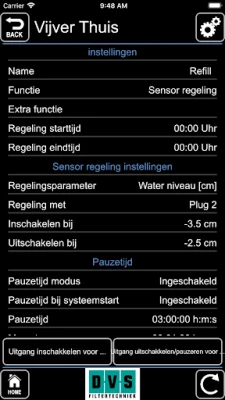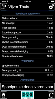 Med DVS Control har du även makten att finjustera inställningar och anpassa systemets beteende efter dina specifika behov. Justera enkelt intervaller för rengöring eller kalibrera andra operativa parametrar direkt från din enhet. Appen erbjuder också avancerad nivåkontroll för dammvatten, vilket ytterligare förenklar underhållet. Allt detta sammantaget ger dig en flexibel och kraftfull plattform för att upprätthålla optimala förhållanden med maximal bekvämlighet och kontroll.