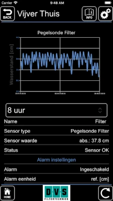 Appen DVS Control är din ögonsten för systemets välbefinnande. Du kan smidigt granska live-mätvärden för avgörande parametrar som temperatur, pH-värde och syrenivå. Skulle till exempel syrekoncentrationen oväntat sjunka under en förinställd gräns, får du en direkt push-avisering till din enhet. Dessutom ger appen insikt i systemets operativa status, inklusive när enheten senast genomgick rengöring. Denna omfattande överblick möjliggör proaktiv hantering och optimering av din anläggning.