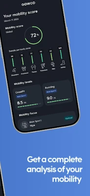 Börja din resa med ett kostnadsfritt rörlighetstest för att etablera din grundnivå. Följ sedan hur din rörlighet utvecklas för varje sport, jämför din statistik månad efter månad och sätt upp personliga mål för en ständigt förbättrad rörelseupplevelse. GOWOD erbjuder specifika protokoll för att finjustera din träningsrutin: Använd "AKTIVERA" för att förbereda kroppen och maximera prestationen, "ÅTERHÄMTA DIG" för att minska muskeltrötthet och snabba på återhämtningen, samt "DAGLIGT FLÖDE" för att kontinuerligt förbättra din rörlighet med enkla och effektiva pass.