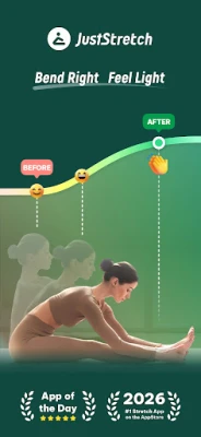 Gör stretching till en daglig vana med JustStretch. Förbättra din flexibilitet och bibehåll din naturliga rörlighet oavsett ålder eller träningsnivå. Upptäck rutiner som ger energi, lindrar spänningar och främjar avkoppling för en hälsosammare kropp.