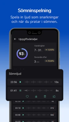 Med Sleep Monitor får du insikter som kan förändra dina nätter. Appen använder telefonens sensorer för att noggrant kartlägga dina sömncykler – från de lättaste stadierna till djupsömn och drömmarnas REM-fas. Men det stannar inte där. Den kan även fånga upp och spela in ljud som snarkningar, sömntal eller tandgnissling, vilket ger dig en fascinerande inblick i vad som händer medan du sover. Registrera dina dagliga vanor, som kaffeintag eller träning, och se tydligt hur de påverkar din sömnkvalitet genom intuitiva veckovisa och månatliga trender. En intelligent väckarklocka säkerställer att du vaknar mjukt i rätt sömnfas, och lugnande ljudlandskap hjälper dig att finna ro inför sänggåendet.