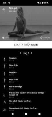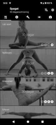 Uppnå full split på bara 30 dagar med Spagat på 30 dagar. Stretching. Appen erbjuder smarta träningsprogram, steg-för-steg-guidning och hjälper dig att stretcha utan skador. Perfekt för alla nivåer, med anpassningsbara pass och möjlighet att följa dina framsteg.