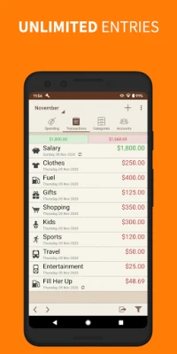 Skräddarsy din finansiella resa med Spending Trackers robusta budgetläge, där du kan sätta tydliga utgiftsmål och till och med överföra eventuellt överskott till nästa period. Få insikt i dina utgiftsmönster genom tydliga översikter som visar din aktuella balans och vilka områden som står för de största kostnaderna. Med interaktiva och visuellt tilltalande rapporter, uppdelade efter anpassningsbara kategorier och ikoner, ser du exakt vart dina pengar tar vägen och kan följa dina framsteg över tid. Skapa separata konton för personliga utgifter, affärsverksamhet eller sparande för en komplett överblick.