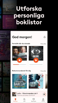 Med ett ständigt växande bibliotek bjuder Storytel in dig att utforska tusentals titlar på en rad språk, från svenska och engelska till finska, danska, arabiska, polska, spanska, italienska, tyska och franska. Hoppa fritt mellan genrer – kanske en spänningsfylld deckare, en värmande feelgood-roman eller tankeväckande fakta? Skapa din personliga bokhylla, få skräddarsydda rekommendationer och håll koll på vad dina vänner läser eller vilka berättelser som trendar just nu. Betygsätt dina läsupplevelser och dela dina tankar med andra bokälskare.