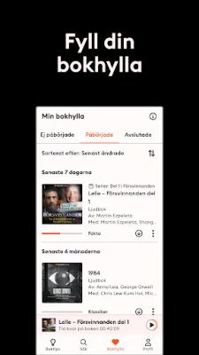 Utforska en oändlig värld av ljudböcker och e-böcker. Fördjupa dig i fängslande berättelser och unikt innehåll som inte är böcker, men som garanterat berikar. Hitta din nästa favorit bland tusentals titlar.