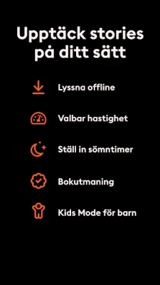 Din berättarupplevelse är skräddarsydd för dig. Lyssna smidigt på din mobil, surfplatta, smartklocka (Wear OS), via Chromecast eller direkt i bilen med Android Auto och Android Automotive. Välj att streama eller ladda ner för offline-njutning, och växla enkelt mellan att lyssna och läsa i samma bok. Anpassa tempot, sätt bokmärken med egna anteckningar och låt sömntimern guida dig till drömmarnas land. För ökad komfort finns mörkt läge, och du kan följa din lässtatistik samt anta spännande Bokutmaningar. För de yngsta äventyrarna finns dessutom ett tryggt Barnläge inkluderat, där de får utforska en handplockad samling sagor under din kontroll med en personlig pinkod.