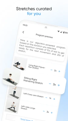 AZ Stretch förstår att varje individs behov är unika. Vare sig du är en löpare som söker snabbare återhämtning, en kontorsarbetare som behöver en morgonrutin för att motverka stelhet, eller en idrottare som vill optimera din prestation och minska skaderisken, skräddarsyr AZ Stretch ett program just för dig. Med ett intelligent system kan du enkelt ange hur lång tid du har till förfogande – oavsett om det är en snabb fem minuter eller en mer omfattande session – och AZ Stretch presenterar en effektiv stretchrutin anpassad till din tid och dina mål. Upplev hur förbättrad rörlighet, minskad smärta och en starkare, mer flexibel kropp kan leda till bättre sömn, mindre stress och en förhöjd energinivå i din vardag.